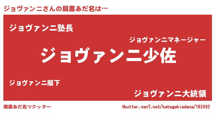 | 男性向けラノベタイトル風あだ名 | 『ジョヴァンニ~年齢イコール彼女いない歴の魔法使い~』 |
