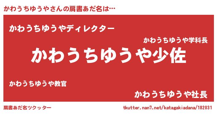 | ヒーロー風カッコイイあだ名 | 『スーパーカワウチユウヤ』 |