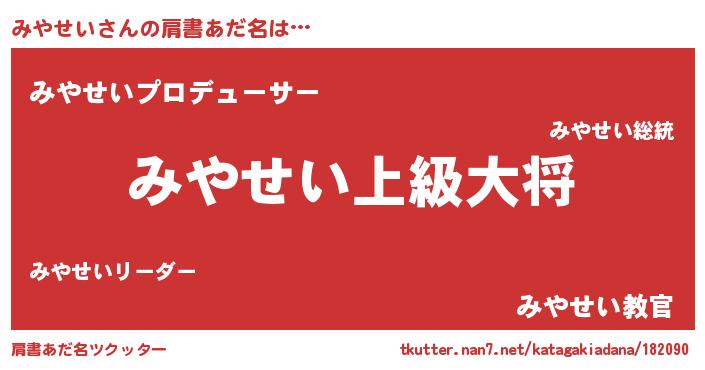 | 男性向けラノベタイトル風あだ名 | 『転生したらみやせいだった件』 |