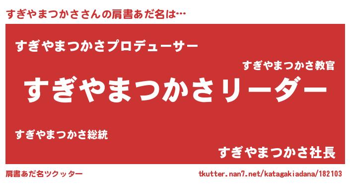 | 欧米人風あだ名 | 『ウサインすぎやまつかさ』 |