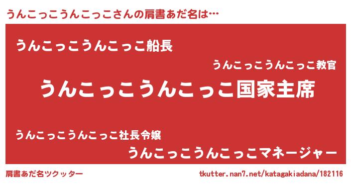 | 意味不明あだ名 | 『うんこっこうんこっこフォーエバー』 |