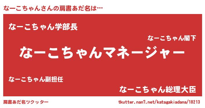 | 男性向けラノベタイトル風あだ名 | 『なーこちゃんに滅ぼされるだけの簡単なお仕事です』 |