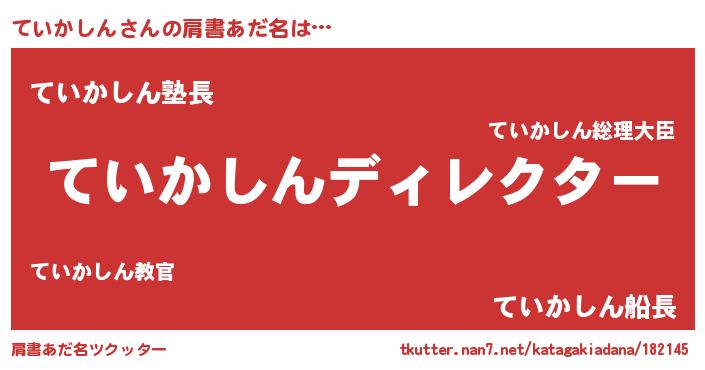 | 意味不明あだ名 | 『とにかく怪しいていかしん』 |