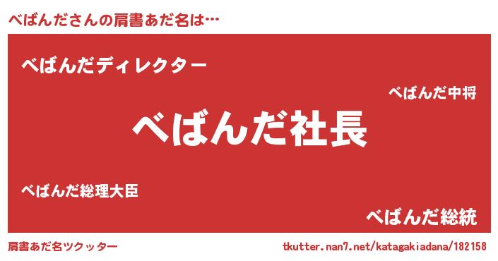 | ヒーロー風カッコイイあだ名 | 『スーパーベバンダ』『最強戦士ベバンダ』 |