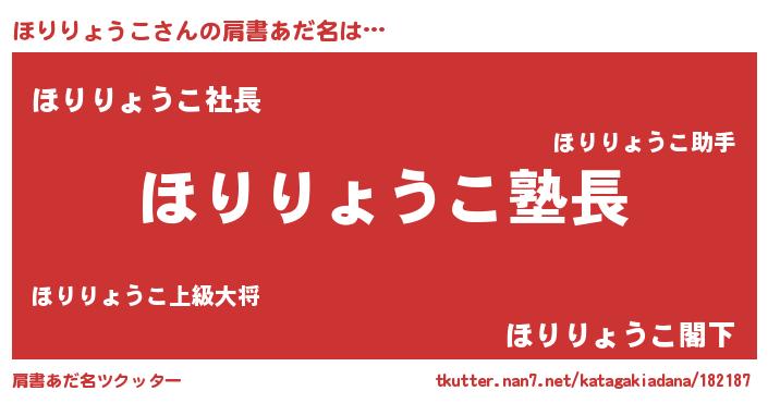 | 意味不明あだ名 | 『とにかく怪しいほりりょうこ』 |