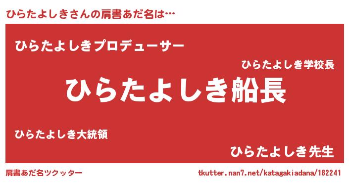| ヘコむあだ名 | 『ひらたよしき(笑)』『なまこ酢』 |