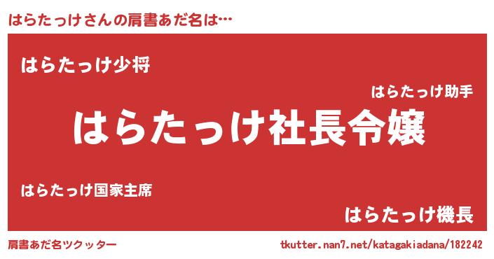 | 女子向けラノベタイトル風あだ名 | 『(仮)はらたっけのやんごとなき事情』 |