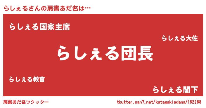 | 男性向けラノベタイトル風あだ名 | 『ダンジョンにらしぇるを求めるのは間違っているだろうか』 |