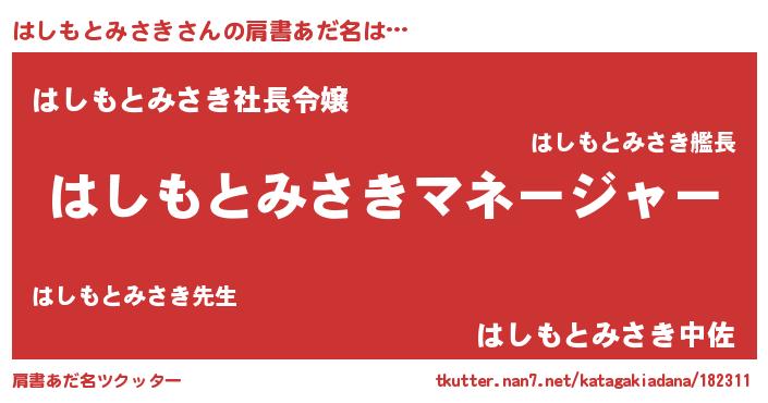 | 男性向けラノベタイトル風あだ名 | 『はしもとみさきに滅ぼされるだけの簡単なお仕事です』 |