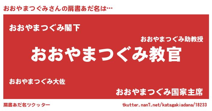 | 伝説のあだ名 | 『秘められし忍者おおやまつぐみ』 |