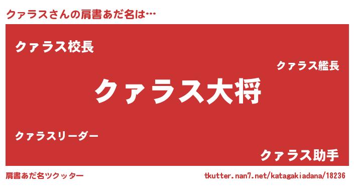 | 男性向けラノベタイトル風あだ名 | 『転生したらクァラスだった件』 |