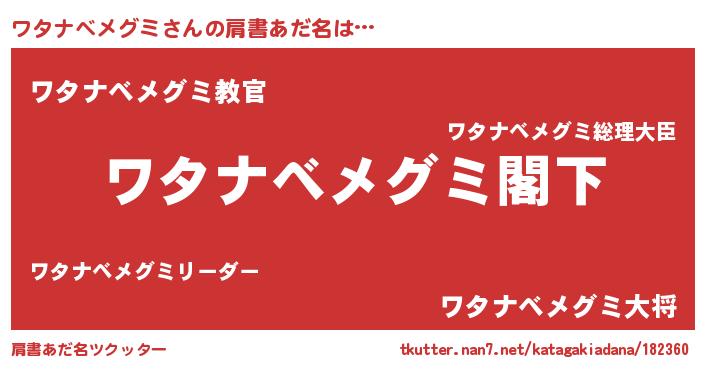 | 意味不明あだ名 | 『自称ワタナベメグミ』 |