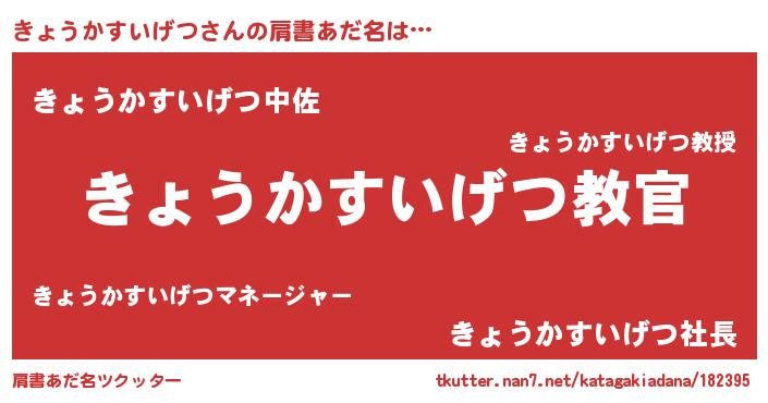 | 意味不明あだ名 | 『住所不定無職きょうかすいげつ(41歳)』 |