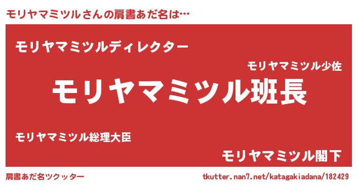 | 男性向けラノベタイトル風あだ名 | 『ダンジョンにモリヤマミツルを求めるのは間違っているだろうか』 |