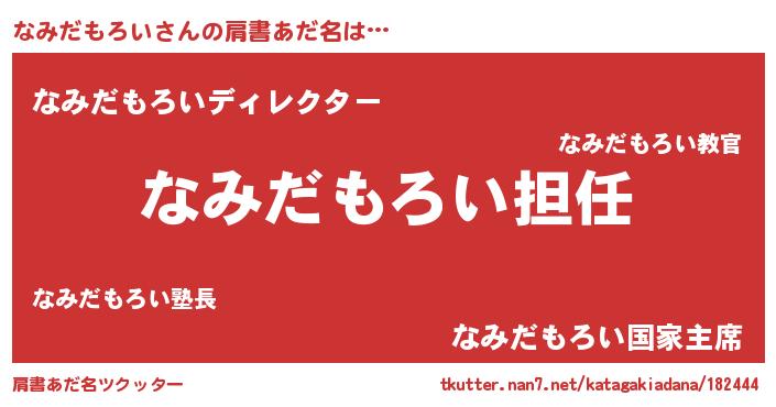 | ヒーロー風カッコイイあだ名 | 『ネオナミダモロイ』『仮面ナミダー』 |