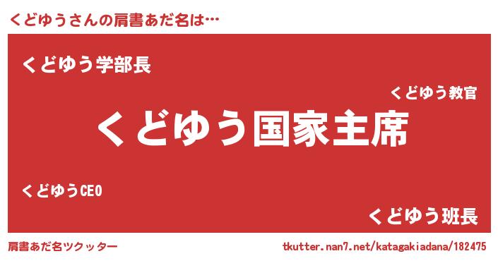 | ヒーロー風カッコイイあだ名 | 『ウルトラくどゆうマン』『天弓騎士クド』 |