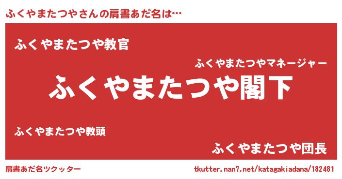 | 意味不明あだ名 | 『自称ふくやまたつや』 |
