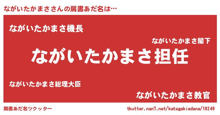 | 胡散臭い通販商品みたいなあだ名 | 『来世でも幸せになれる水素水…その名も「ながいたかまさ」』 |
