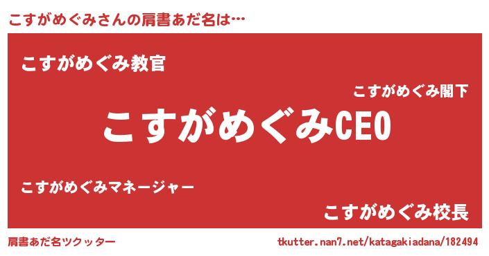 | ヘコむあだ名 | 『こすふぇ~』『こすがめぐみ(小並感)』 |