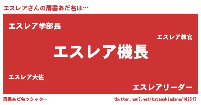 | 欧米人風あだ名 | 『エスレア・ステッグマイヤー』 |