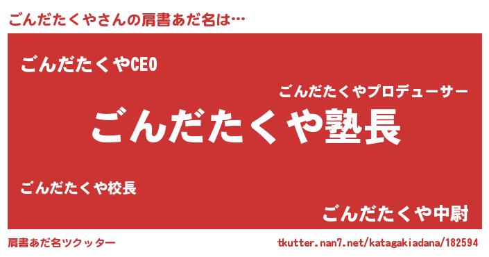 | 男性向けラノベタイトル風あだ名 | 『ごんだたくやの嫁は女の子じゃないと思った?』 |