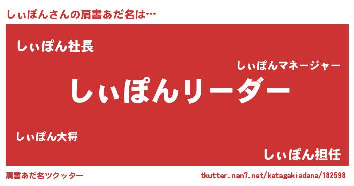 | 意味不明あだ名 | 『とにかく怪しいしぃぽん』 |