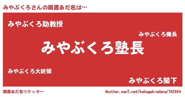 | 男性向けラノベタイトル風あだ名 | 『ダンジョンにみやぶくろを求めるのは間違っているだろうか』 |