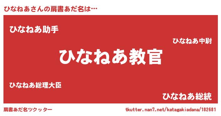| 意味不明あだ名 | 『住所不定無職ひなねあ(3歳)』 |