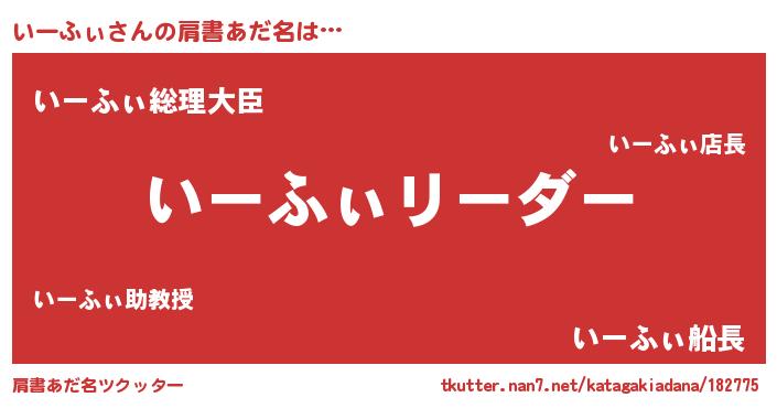 | 女子向けラノベタイトル風あだ名 | 『いーふぃ様がみてる』『いーふぃ恋絵巻』 |