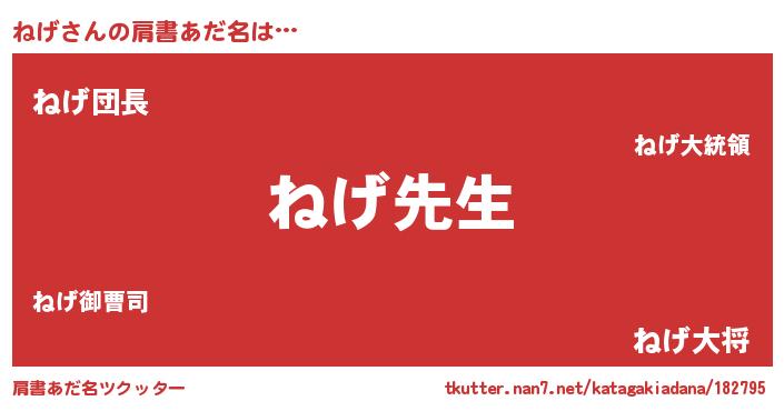 | ヘコむあだ名 | 『ねげ(笑)』『ねげを』『酢こんぶ』 |