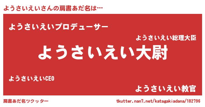 | 男性向けラノベタイトル風あだ名 | 『ようさいえい~年齢イコール彼女いない歴の魔法使い~』 |