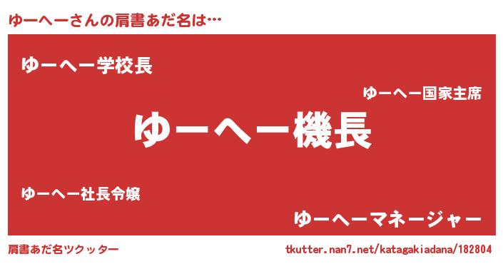 | 男性向けラノベタイトル風あだ名 | 『うちのゆーへーが世界を掌握している!』 |