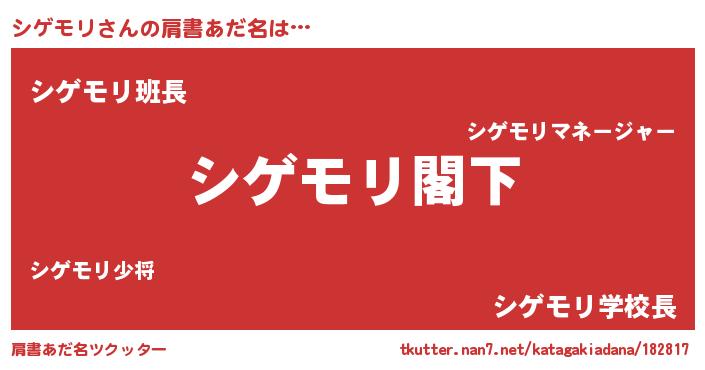 | 女子向けラノベタイトル風あだ名 | 『シゲモリアンティーク』 |