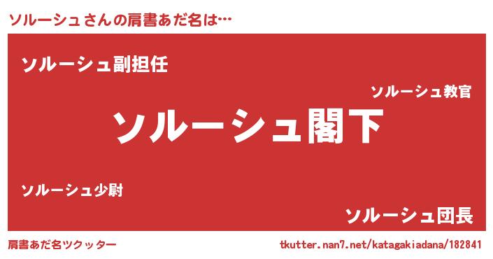 | 意味不明あだ名 | 『自称ソルーシュ』『永久保存ソルーシュ』 |