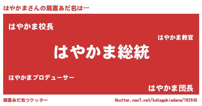 | 意味不明あだ名 | 『自称はやかま』『永久保存はやかま』 |