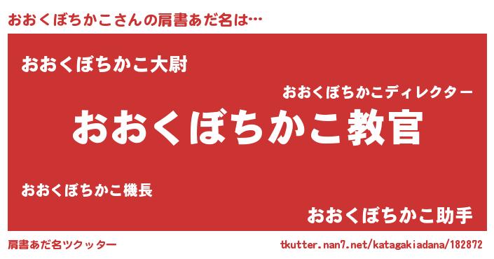 | 女子向けラノベタイトル風あだ名 | 『おおくぼちかこが死なない童話 林檎のおおくぼちかこの診療簿』 |