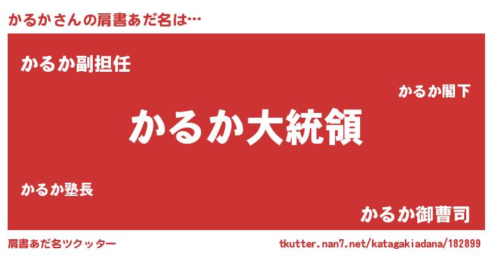 | 女子向けラノベタイトル風あだ名 | 『かるかの婚約者』『かるかアンティーク』 |
