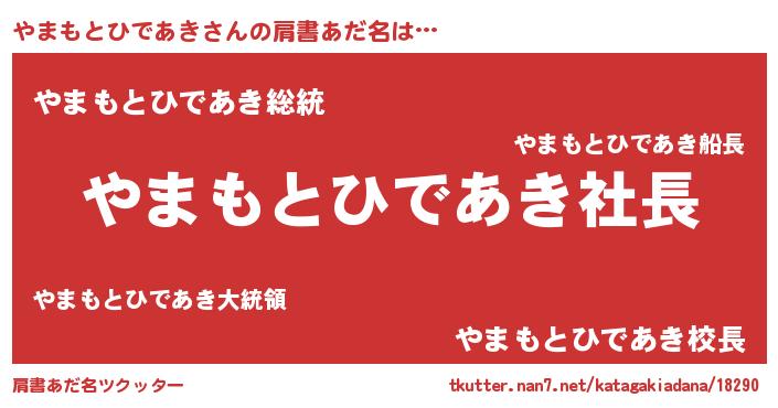 | 女子向けラノベタイトル風あだ名 | 『(仮)やまもとひであきのやんごとなき事情』 |