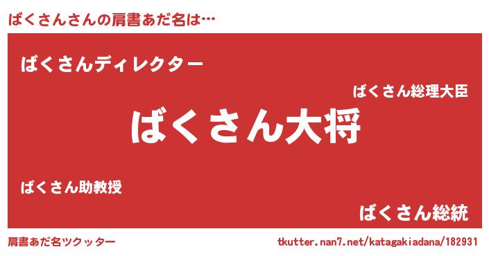 | 料理風あだ名 | 『ばくさんごはん』 |
