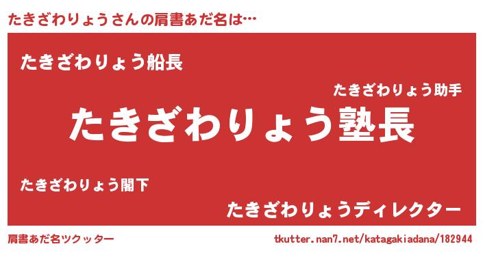 | 男性向けラノベタイトル風あだ名 | 『ダンジョンにたきざわりょうを求めるのは間違っているだろうか』 |