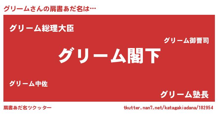 | 意味不明あだ名 | 『自称グリーム』『グリームフォーエバー』 |