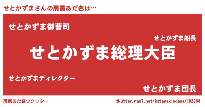 | 意味不明あだ名 | 『せとかずまフォーエバー』 |