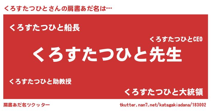 | ヘコむあだ名 | 『くろすたつひと(笑)』『酢こんぶ』 |