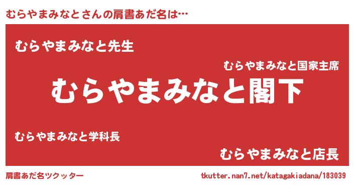 | 男性向けラノベタイトル風あだ名 | 『Re:むらやまみなとから始める異世界生活』 |