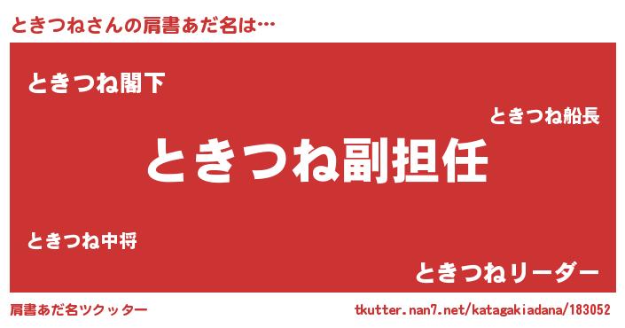 | ヘコむあだ名 | 『ときつね(震え声)』『ときを』 |