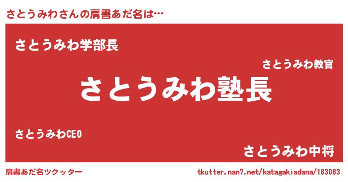 | ヒーロー風カッコイイあだ名 | 『幻影騎士サト』『慈愛の使者さとうみわ』 |