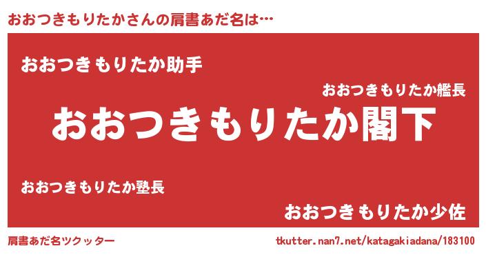 | 意味不明あだ名 | 『自称おおつきもりたか』 |