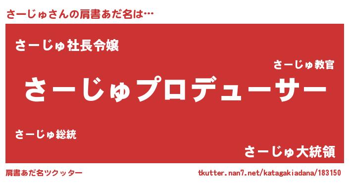 | 男性向けラノベタイトル風あだ名 | 『さーじゅに滅ぼされるだけの簡単なお仕事です』 |