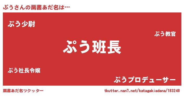| ヘコむあだ名 | 『ぷうを』『ぷうふぇ~』『酢こんぶ』 |