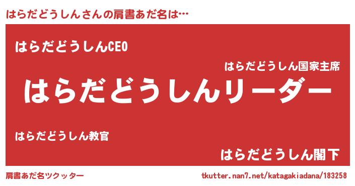 | 意味不明あだ名 | 『とにかく怪しいはらだどうしん』 |
